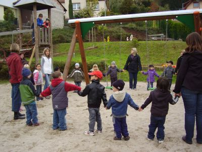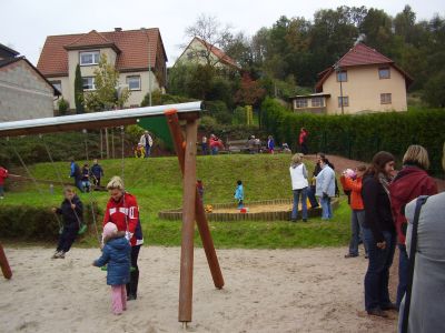 Bei der offiziellen Einweihung am Freitag, 15.Oktober 2010 waren auch die Kinder des Kindergartens mit Tanz und Gesang dabei. Nach dem offiziellen Teil lud Bürgermeister Peifer zu die Anwesenden zu einem Umtrunk ein. Natürlich war auch für die Kinder gut gesorgt. Seifenblasen, Mohrenköpfe, Limo usw. sorgte für eine angenehme und lustige Zeit.