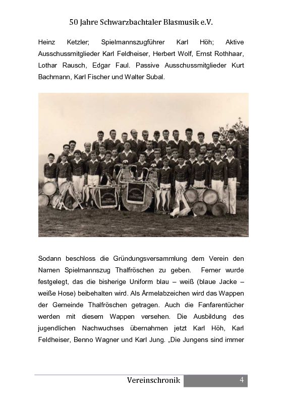 50 Jahre Schwarzbachtaler Blasmusik mit Vereins Chronik (zur Verfügung gestellt von Mathias Müller)